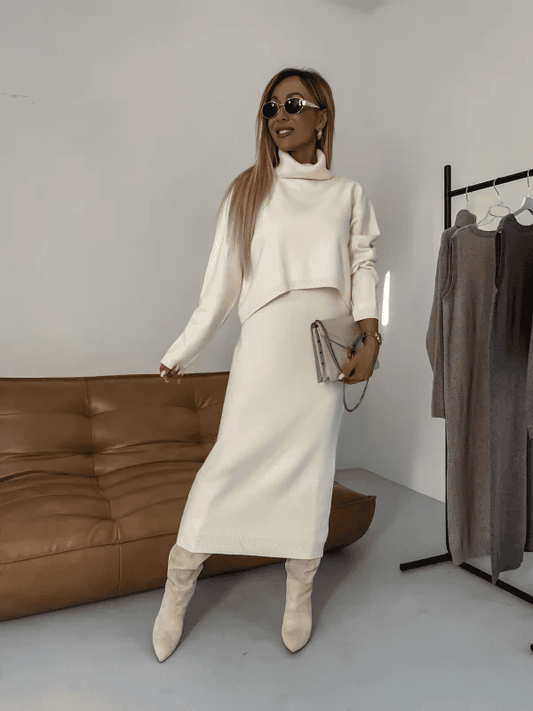 Elegante Jurk en Trui Set voor Modebewuste Vrouwen - Veelzijdige Stijl