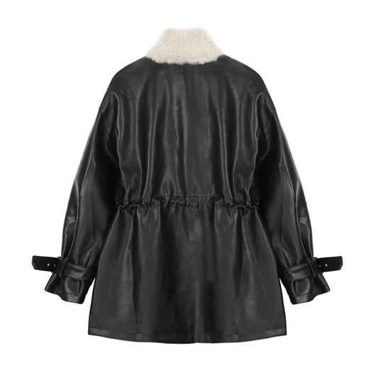 BLACK FRIDAY SALELederen Dames Jas met Lamswol - Imitatieleer en Lamswol