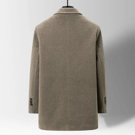 Heren Lange Wollen Zakenjas – Klassieke Stijl en Warmte voor Winterse Elegantie