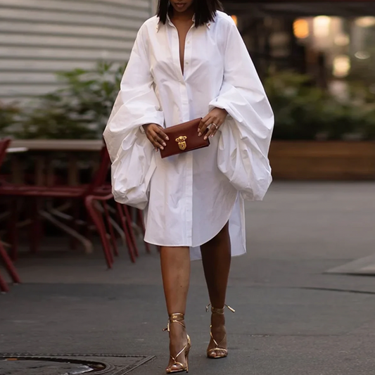 BLACK FRIDAY SALEBlouse Jurk - Pofmouwen - Duurzaam Materiaal - Geschikt Voor Elk Seizoen