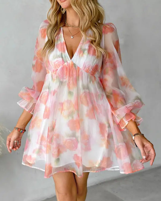 BLACK FRIDAY SALEGebloemde Jurk - Lange Mouwen - Vrouw - Transparant