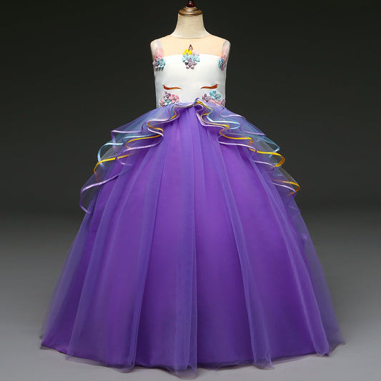 Prinsessenjurk - 3D Eenhoornprint - Tule en Mouwloos - Geschikt voor Dagelijks en Feestelijk