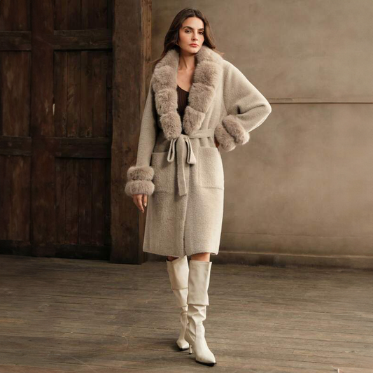BLACK FRIDAY SALESolange Luxe Jas met Bontkraag - Dames - Tijdloze Elegantie