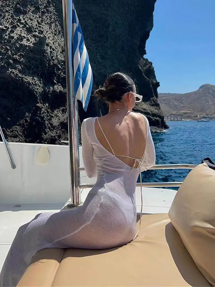 Deze lange mesh jurk is ontworpen voor vrouwen die elegantie willen uitstralen, zelfs op de warmste zomerdagen. De luchtige stof met subtiele glans voelt zacht aan op de huid en biedt tegelijkertijd bescherming tegen de zon. Perfect voor strandfeesten, jachttrips of stijlvolle vakantiedagen.